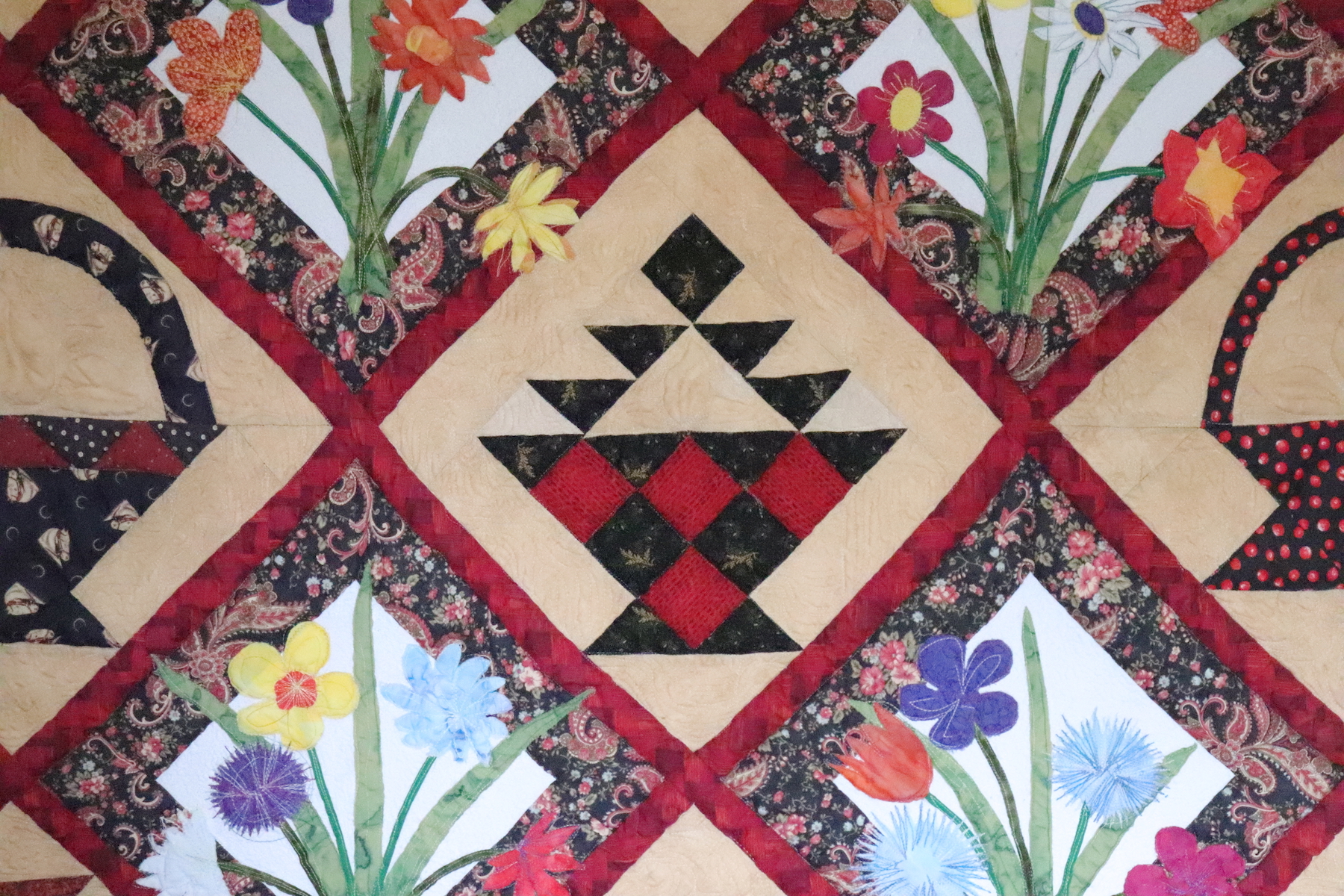 My interests and self-expression, a combination of my scientist side melding with my artistic bent, have resulted in my long-term interest in and creation of a multitude of quilts. I learned to stitch from my grandmother as we settled down together for the air raid drills during WWII. My quilts range from the traditional to the wild use of color in random patterns. And they are practical too: they are meant to keep us warm. Most have been given to others; I have only kept a few.