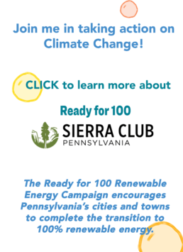 More recently, I’ve become actively involved in Sierra Club’s initiative, Ready for 100, by bringing this campaign to my township. My involvement came from my wanting justice and fairness, not only for myself but for others. And through my conviction that Climate Change is real and can be demonstrably illustrated in our own neighborhoods. Although I may not live to experience its major impacts, Climate Change will negatively affect the lives of my granddaughters. Simply put, I cannot sit back and let it happen. Each of us must do our own part in adapting to a new climate and contributing to every possible action that mitigates its impact.